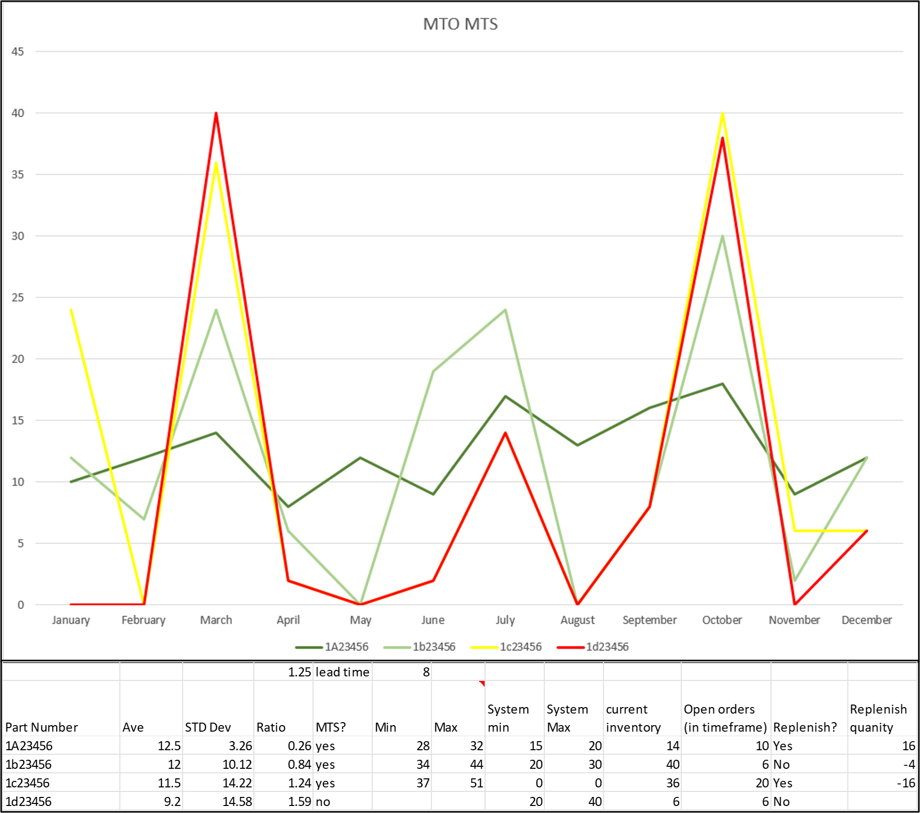 Use statistical methods to analyze SKU, semi-finished, and raw material inventory to support strategic (80/20) customers and products. Using ratios of average usage and standard deviation will determine if a part should be made to stock or should be considered made to order.