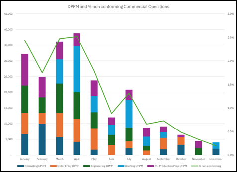 DPPM measures the defect rate in parts produced. However, it’s not just about production—it extends to the entire commercial process that produces quotations, job tickets and invoices.